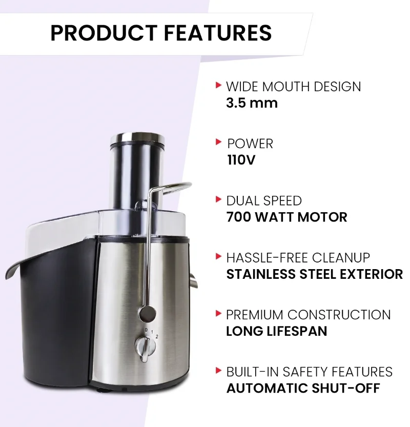 - Two Speed 700W Motor: Powerful motor offers up to 22,000 RPM with two speed options to efficiently extract delicious, pulp-free juice, rich in vitamins and minerals