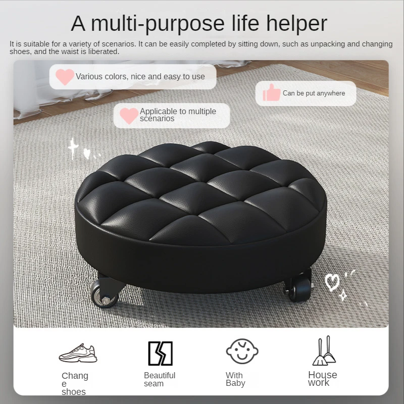 Household Round Pouf Massage Chair Pulley Stool Universal Wheel Low Stool With Roller Move Wipe The Ground Bench Round Stool