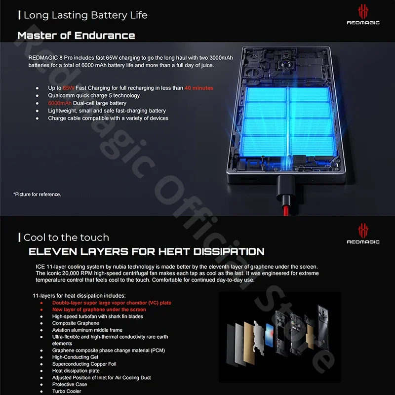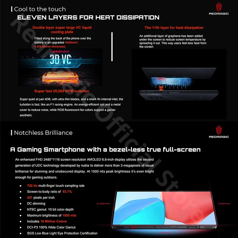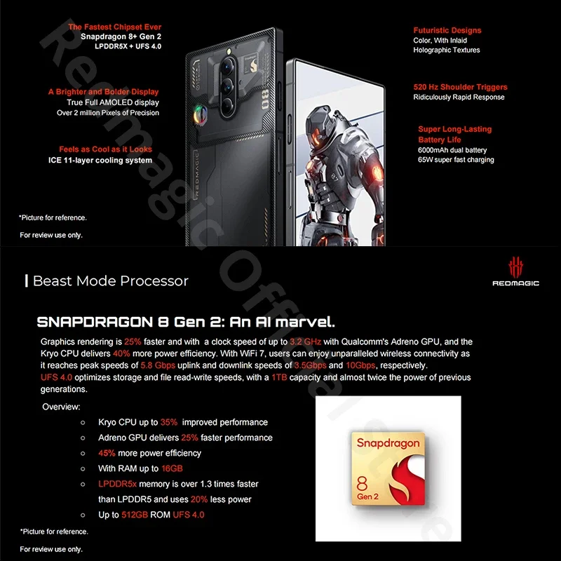 Nubia Redmagic 8 Pro 5G Gaming Smartphone Global Version 6.8'' 120Hz AMOLED Snapdragon 8 Gen 2 65W super fast charge 6000mAh NFC