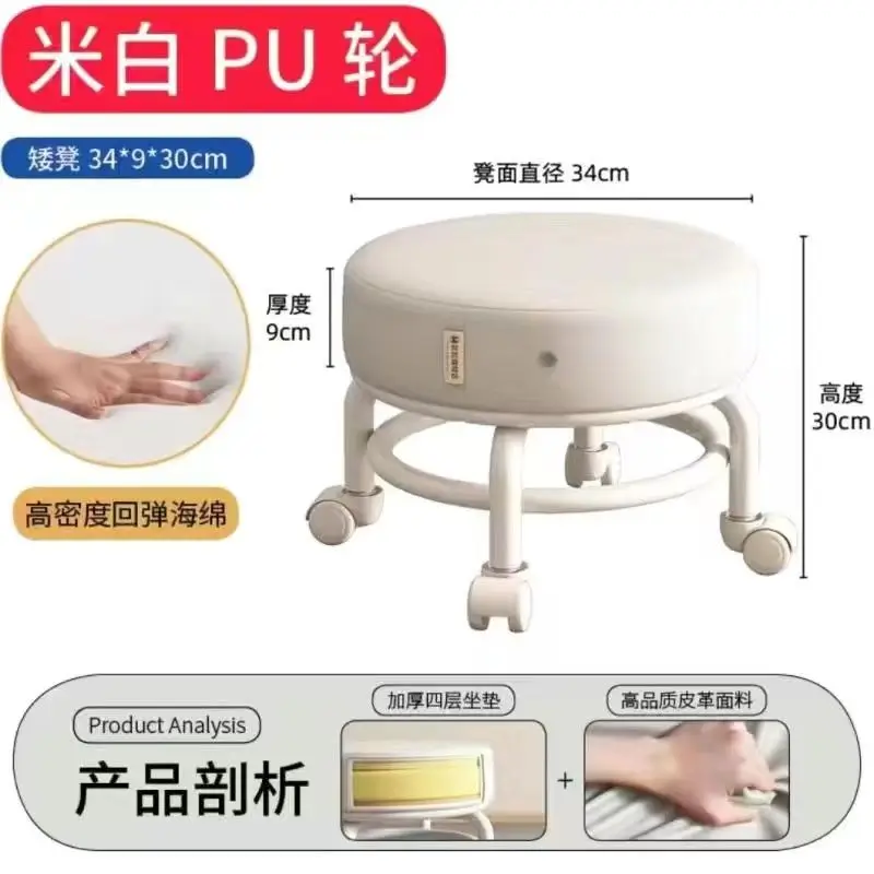 Backrest round stool small chair for child stool changing shoes pedicure universal wheel pulley low stool furniture