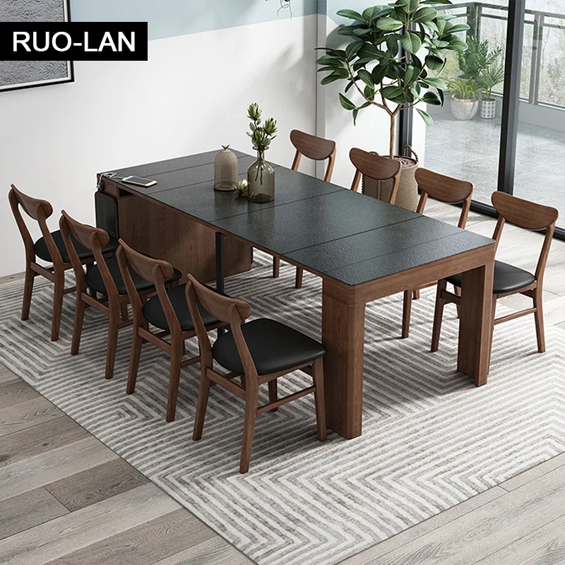 Nordic Slate Folding Small Dining Table Dining Chair Small Apartment Retractable Slate Dining Table Home