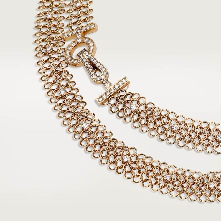 AGRAFE RÉSILLE necklace, 750‰ rose gold, set with 102 round brilliant-cut diamonds, totaling 5.10 carats.