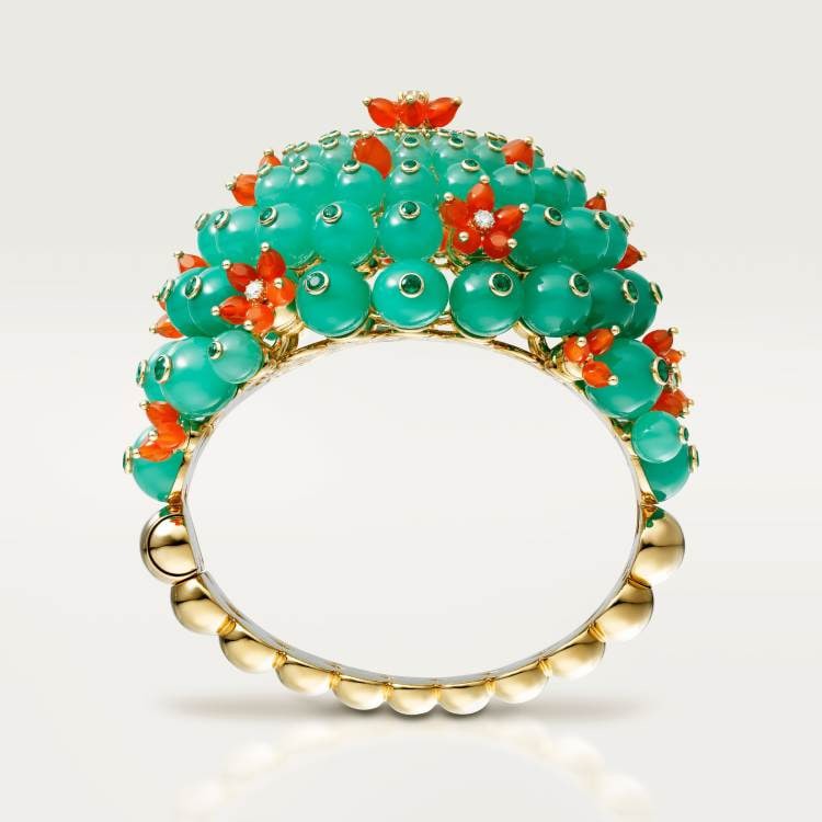 CACTUS DE CARTIER bracelet, 750‰ yellow gold, chrysoprase, emerald, carnelian, 8 brilliant-cut diamonds, total weight 0.61 carat (applicable size: 17).