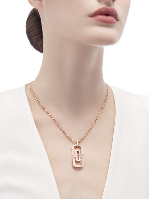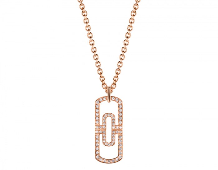 PARENTESI necklace, made of 18K rose gold, decorated with full pavé diamonds. Length 19.70-27.60 inches (50-70cm).